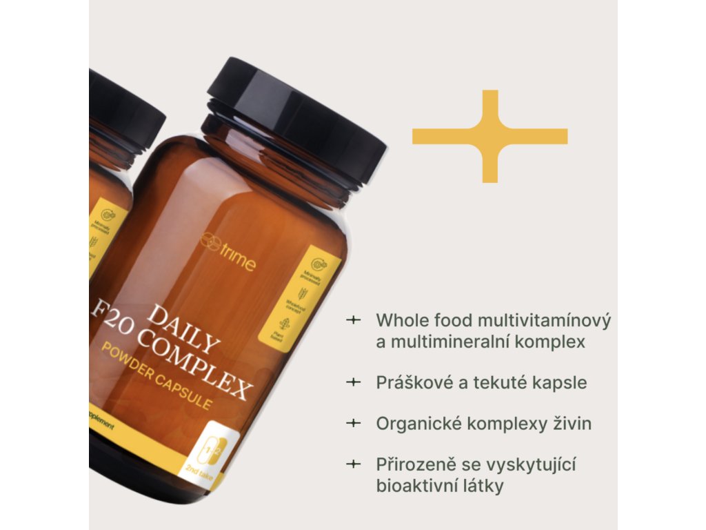 Produkt F20 Complex patrí medzi doplnky stravy z celistvých potravín. Vitamíny a minerály pochádzajú z prirodzených a celistvých potravín, v ktorých sú živiny synergicky kombinované, čo predstavuje pre telo najprirodzenejší spôsob ich príjmu.