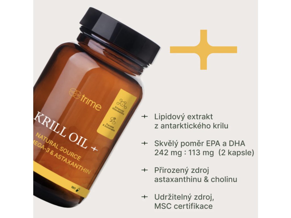 Kril je bohatým zdrojom omega-3 mastných kyselín EPA a DHA vyskytujúcich sa vo forme fosfolipidov, čo zaisťuje ich výbornú vstrebateľnosť v tele. Kril tiež prirodzene obsahuje unikátny astaxantín, ktorý mu dodáva jeho červenú farbu, a cholín, ktorý prispieva k normálnej činnosti pečene a normálnemu metabolizmu lipidov.