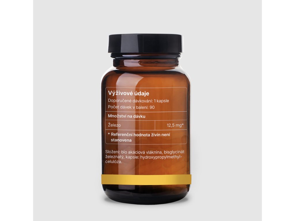 Železo je kľúčové pre tvorbu hemoglobínu, ktorý zabezpečuje prenos kyslíka v krvi, a podporuje celkovú energetickú úroveň, kognitívne funkcie a imunitný systém. Chelátová forma železa je vysoko vstrebateľná, stabilná a dobre znášaná, čo ju robí jednou z najlepších foriem doplnkov stravy. Viazané na aminokyseliny glycín, neoxiduje v žalúdku ako iné soli železa a počas vstrebávania nekonkuruje minerálom ako vápnik a zinok. Bisglycinát železnatý je ideálny pre osoby s nedostatkom železa alebo so zvýšenou potrebou tejto minerálnej látky.