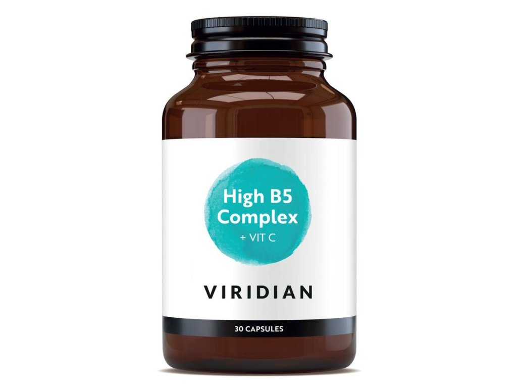 Viridian B5 komplex obsahuje vitamíny skupiny B so zvýšeným obsahom vitamínu B5 a pridaným vitamínom C v kyslo neutrálnej forme (L-askorbát horečnatý). Obsahuje kompletné, využiteľné spektrum vitamínov skupiny B (B1, B2, B3, B5, B6, B12, cholín, inozitol, biotín, kyselina listová) so zvýšeným zastúpením vitamínu B5 (D-pantotenát vápenatý). Vitamín C je zastúpený v exkluzívnej forme L-askorbátu horečnatého, pH stabilizovanej forme vitamínu C (nekyslá forma, viazaná na molekulu horčíka).